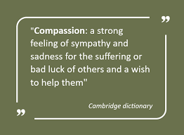 Compassion means feeling care and concern for someone who is sad, hurt or struggling, and wanting to help them.