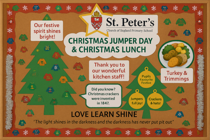 What a joyful day we’ve had at St Peter’s! Our Christmas Jumper Day brought so much colour and sparkle to school, and the children looked fantastic in their festive knits. Thank you to everyone who has already made a donation to support Save the Children, a charity that works tirelessly to improve the lives of children around the world by providing education, healthcare, and emergency aid where it’s needed most. If you haven’t yet contributed, it’s not too late! You can make a direct donation via https://www.savethechildren.org.uk/christmas-jumper-day. Every pound really does make a difference.
