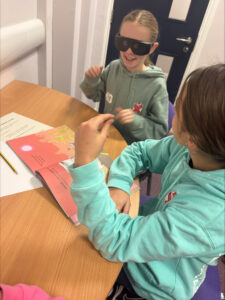 The library team went above and beyond by organising a thought-provoking activity focused on empathy and understanding differences. Children explored what it might feel like to live with visual impairments by trying on special glasses that simulated conditions such as Tunnel Vision. They then attempted to read books through these lenses – an eye-opening experience that sparked meaningful conversations about inclusion and respect.
