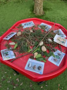 On a walk, collect sticks, stones or petals. Make a small set and invite your child to find “the same again.”
