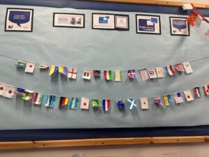 Children wrote prayers, hopes or messages of encouragement on small flags, creating a colourful line of positivity hanging across the room.