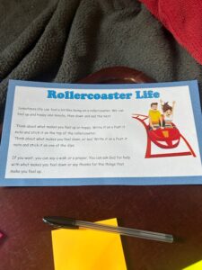 Using a paper rollercoaster template, children reflected on the ups and downs of their emotions, helping them recognise that life’s twists are normal and manageable.