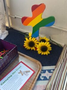 A simple wooden cross encouraged children to think about worries or burdens they may be carrying, and what helps them feel supported.