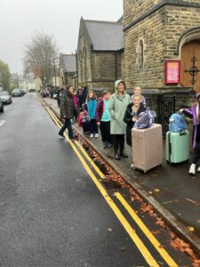 There was a real buzz in the air on Tuesday morning as our Year 6 children gathered in the school hall, rucksacks packed and smiles wide. It was wonderful to see so many parents waving us off – thank you for your support in helping the children be so well prepared for this special adventure.