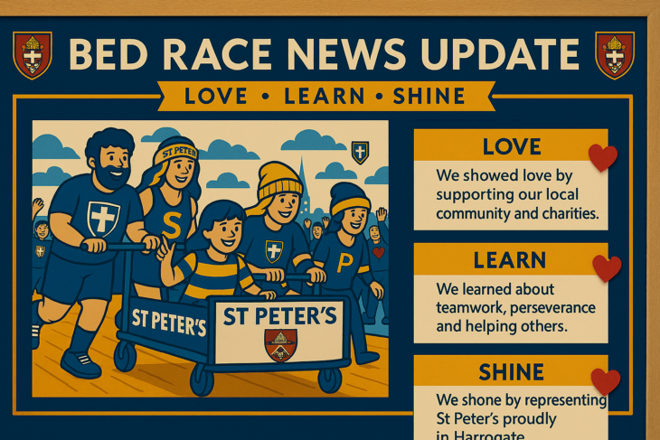 The Great Knaresborough Bed Race is a brilliant example of our school vision in action. Through fundraising, creativity and teamwork, our children are encouraged to learn with curiosity, shine through their talents, and show love and commitment to their community.